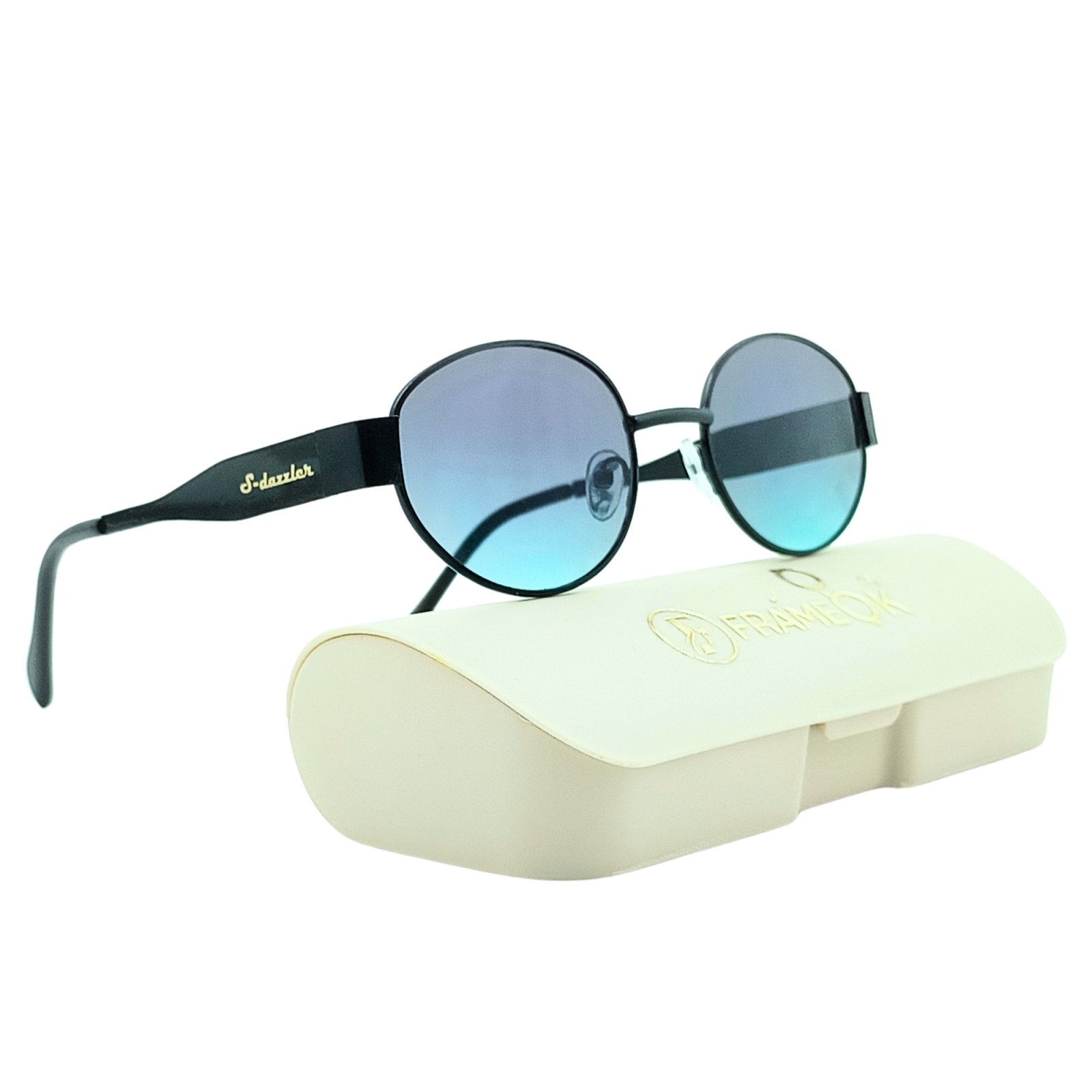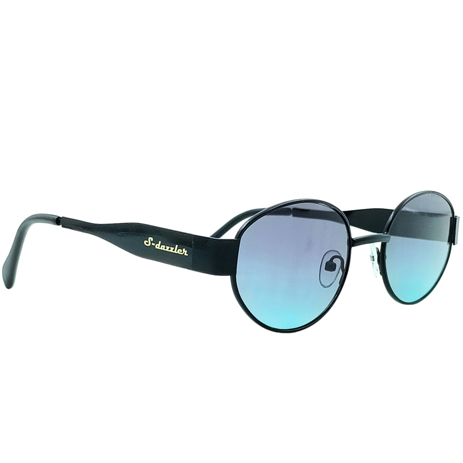 Enhance your style with these S-Dazzler round unisex sunglasses, designed for both men and women who love modern fashion. Featuring a sleek black frame and attractive blue gradient lenses, these sunglasses provide a stylish and comfortable look suitable for daily wear.