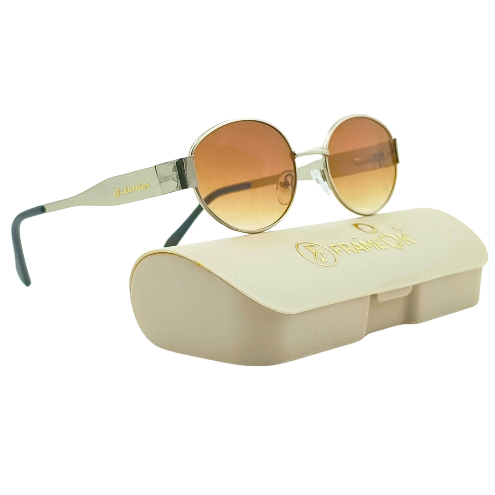 Elevate your style with these elegant round sunglasses designed with a slim Silver -tone metal frame and smooth gradient lenses that fade from deep amber to soft yellow. The minimalist silhouette blends retro inspiration with modern aesthetics, making them a versatile accessory for both casual and formal looks. Lightweight and comfortable, these sunglasses offer a timeless appeal while adding a touch of sophistication to any outfit.
